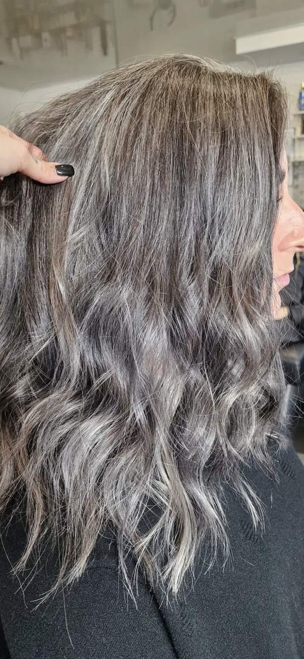 - Les transitions de ce type vous permettront un jour, de ne plus jamais vous teindre les cheveux, mais ça ne se fera pas en un seul rendez-vous. Le gris demande de l’entretien. C’est donc naturel, que les longueurs devront être entretenues jusqu’au jour où votre couleur naturelle soit présente jusqu’aux pointes. Des rendez-vous tous les 3,4 mois devront être pris, et un shampoing et un masque adaptés devront être appliqués à chaque lavage.